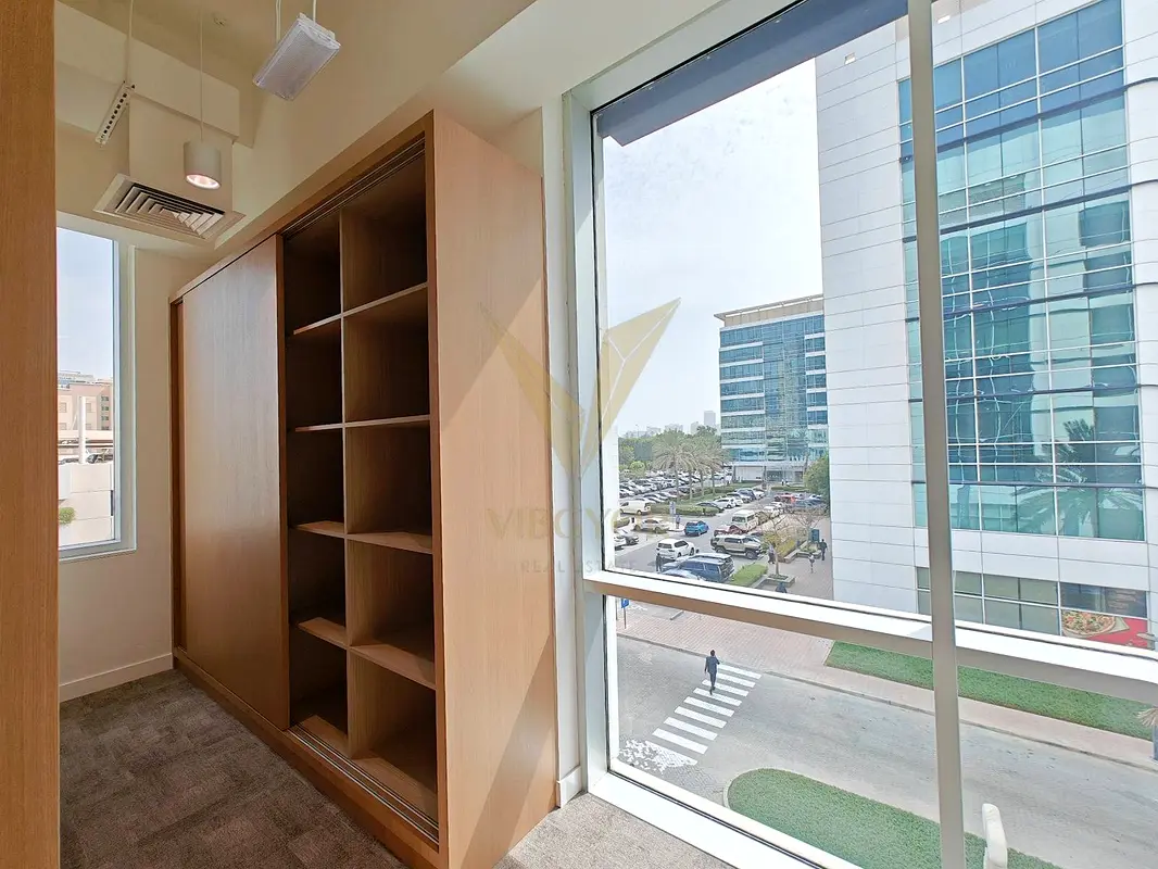 Presenting a premium office space for rent in the prestigious Emaar Business Park Building 3, The Greens. This corner unit offers a professional setting with high-quality finishes, abundant natural light, and a prime business address.
